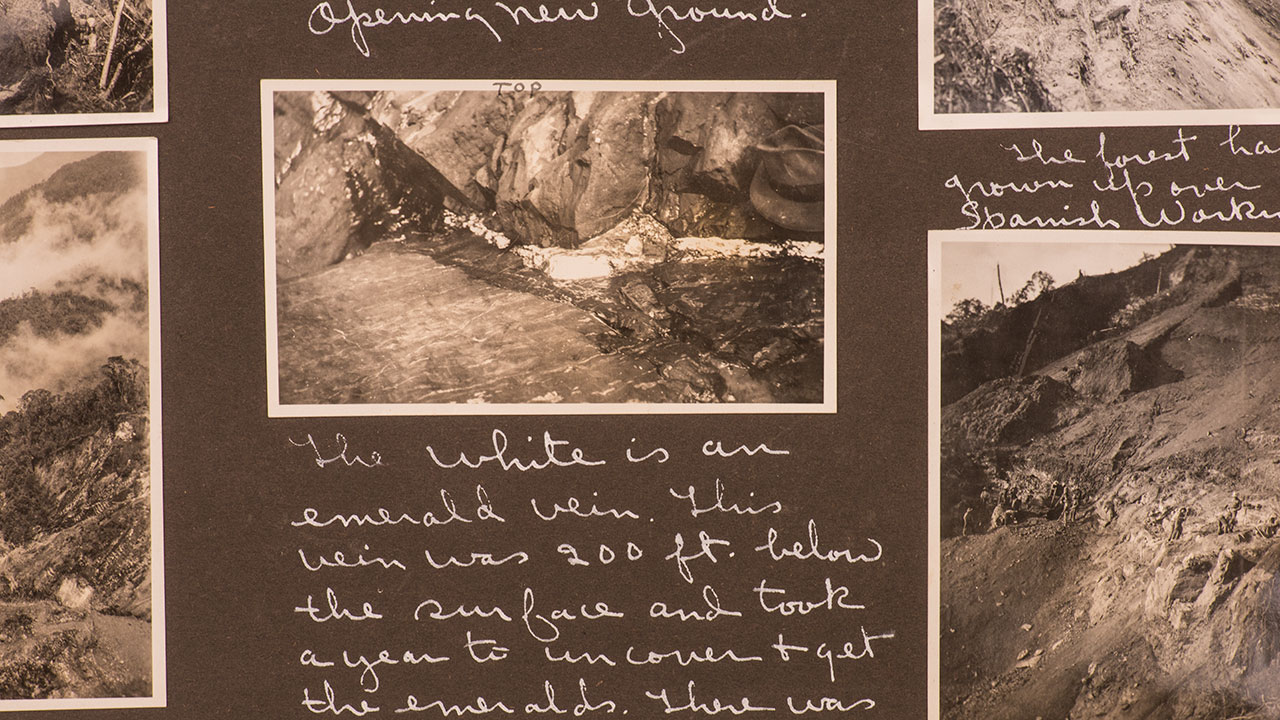 Further investigation of the archives at GIA’s Richard T. Liddicoat Library revealed a long-forgotten Rainier file and an album of black-and-white photographs, many of which identify him as the photographer. The images of Rainier and the mine workers, the mountainous landscapes, and the terraced mines at Chivor, as well as negatives showing impressive emerald crystals, are pieces of a provocative story that is all but lost to history. Sinkankas had purchased the album during the 1980s and added it to his personal library, which was acquired by GIA in 1989. Sinkankas also referenced Rainier’s scholarly articles about Chivor in his own extensive writings about emeralds.