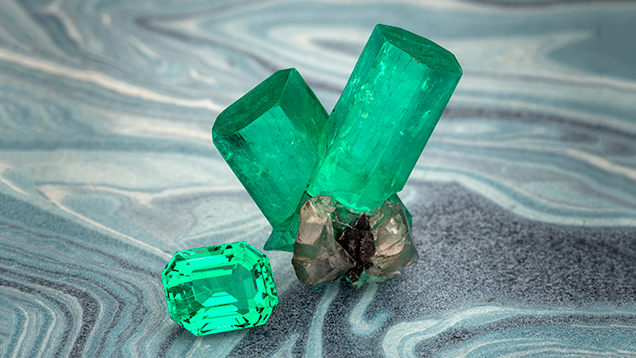 emerald finds from the Chivor region, courtesy of Roz and Gene Meieran. Photo by