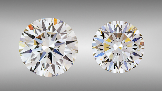 Two near-colorless rounds, weighing 3.23 and 2.51 ct, were the largest CVD-grown synthetic diamonds GIA has examined.