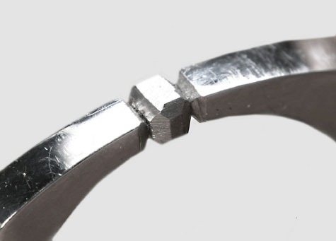 品质保证基准重点强调了半成品或成品珠宝的工艺。 了解如何评估使用激光焊机增大尺寸且戒圈上有槽镶钻石的铂钌戒指的品质。
