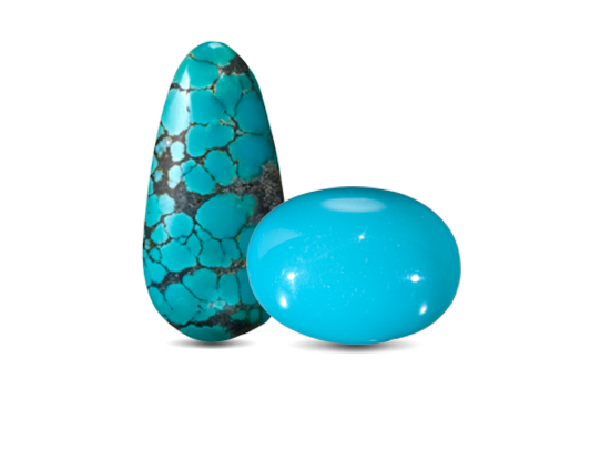 土耳其石由铜着色而显出宝石中最鲜艳的蓝色和绿色。