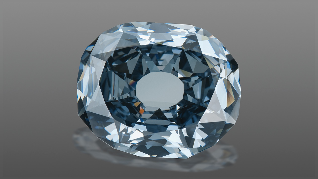 The Hope diamond may be the most famous colored diamond in the world. A team of GIA gemologists graded it in 1988. Because they were able to weigh the diamond unmounted, they quickly made a notable discovery: the diamond was 45.52 ct, and not 44.50 ct, which had been its previously recorded weight. GIA graders also reported that the Hope diamond is a cushion brilliant cut. The diamond was color graded as a natural color Fancy dark grayish blue diamond.Since the 1800s, the Hope diamond had been described as being flawless. During their examination, the GIA team noticed that the diamond had accumulated a few wear marks over the years and had whitish graining and a few minor feathers. Its clarity was graded as VS1 (Very slightly included). Good polish and Fair to Good symmetry were also noted. Technical specifications aside, the Hope diamond captivates the imagination like no other gemstone.