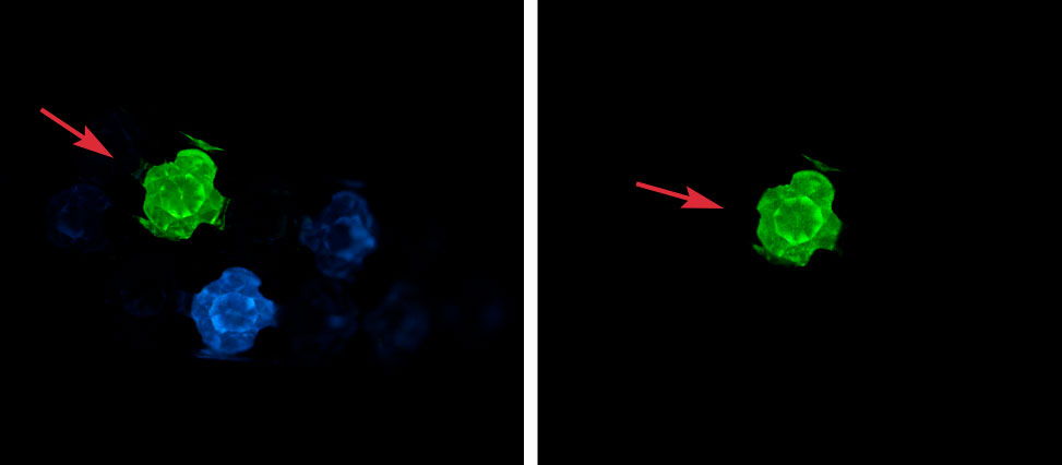 Using NGTC’s GV5000 rapid screening instrument, the UV luminescence of a group of diamonds can be observed at the same time. Unlike colorless to near-colorless HPHT synthetic melee, which normally displays strong phosphorescence, the CVD phosphorescence reaction tends to be weak or inert. The GV5000 provides broadband UV excitation, in which colorless to near-colorless HPHT synthetics display strong greenish blue phosphorescence for about 3–60 seconds. Colorless to near-colorless CVD synthetics normally emit weak phosphorescence that lasts less than 3 seconds, while natural diamonds very rarely show phosphorescence with medium to weak intensity for 1 to 2 seconds. Also, the fluorescence color under the GV5000 is mostly blue-white for natural diamonds, strong greenish blue for HPHT synthetics, and bluish green or green or orange to red for CVD synthetics (colorless to near-colorless). We noticed the green fluorescence and weak green phosphorescence of this melee and conducted further testing. The green fluorescence and phosphorescence were more pronounced in the DiamondView (figure 3), but the layered growth structure of CVD synthetics was still not seen due to the specimen’s small size.