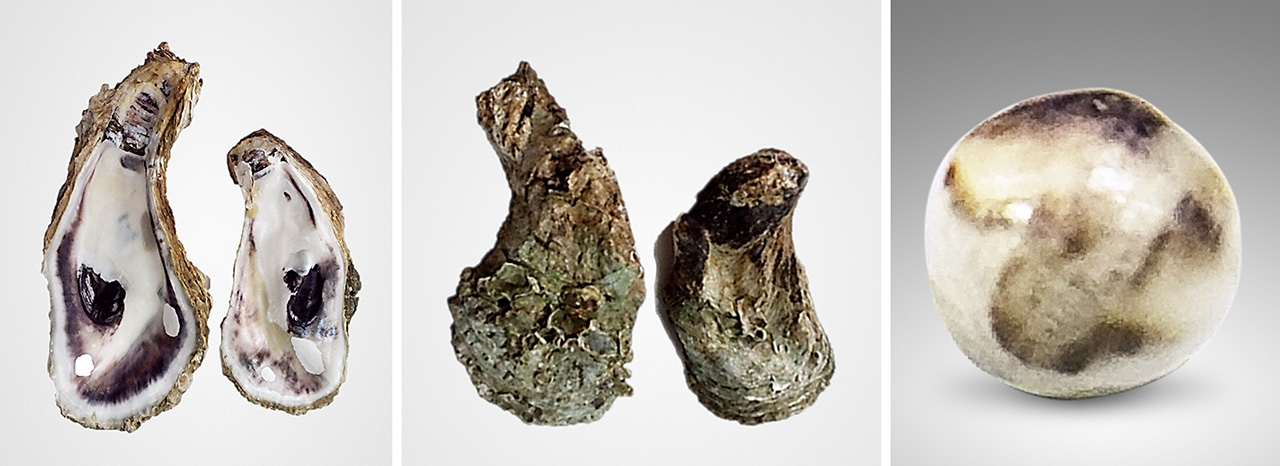 Oysters living in tropical and warm regions have darker, more vivid, and more extensive coloration than those in cooler climates. Our finding is very similar to that of Scarratt et al. (2006), which found a pearl inside Crassostrea virginica that was attached to an adductor scar. In our case, the pearl was attached to the tissues near an adductor scar. This finding demonstrates the very rare phenomenon of edible oysters producing natural pearls. However, further work will be needed to determine its chemical composition using highly accurate analytical methods.