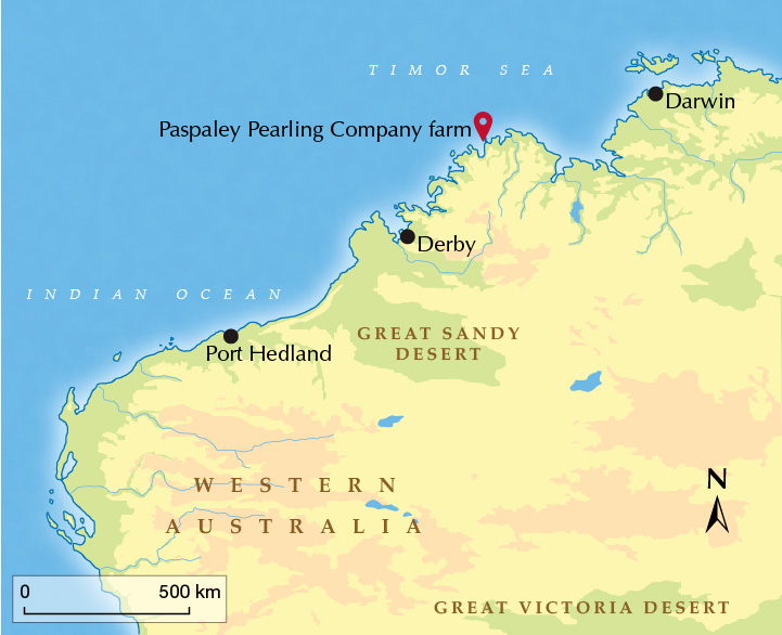 In October 2014, two members of GIA’s pearl team (authors AH and NN) visited a farm owned and operated by the Paspaley Pearling Company located near Middle Osborn Island, off the coast of the Kimberley region in Western Australia, approximately 560 km southwest of Darwin (figure 3). The purpose of the trip was to collect known samples of South Sea cultured pearls (again, see figure 1), particularly NBC pearls, directly from cultured pearl sacs that had developed from pieces of mantle tissue inserted into the gonads of host mollusks. Throughout the seven-day visit, nearly 925 mollusks from approximately 10,000 operated shells available were inspected, and a total of 86 cultured pearls (74 NBC and 12 BC) were selected for this study. Only the BC pearls with intriguing surface protrusions were selected from the numerous BC pearls recovered.