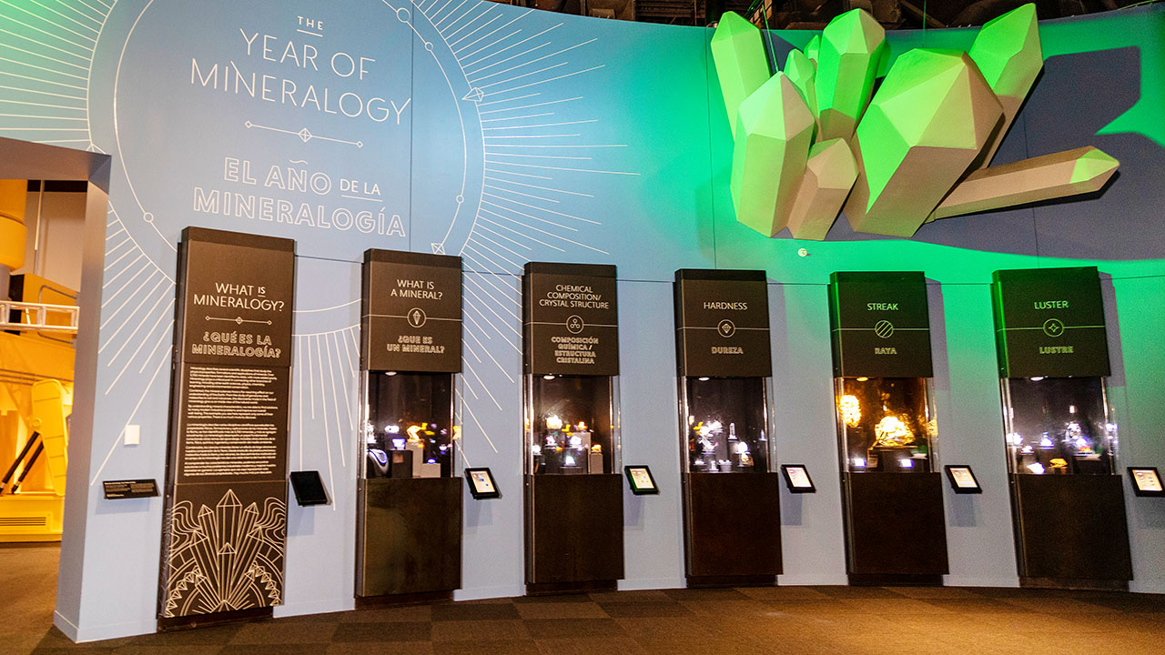 2022 is the International Mineralogical Association’s designated year for celebrating the history, development, and role of mineralogy, with a goal of promoting public interest in mineral studies. The association aims to emphasize mineralogy’s critical role in technology and society and to highlight the future of mineralogy through the exploration of new and environmentally conscious methods for extracting the minerals used today. To help carry out this mission, the Perot Museum of Nature and Science in Dallas has created the Year of Mineralogy exhibit (figure 1) in the Lyda Hill Gems and Minerals Hall (https://www.perotmuseum.org/exhibits/halls/lyda-hill-gems-and-minerals-hall/).