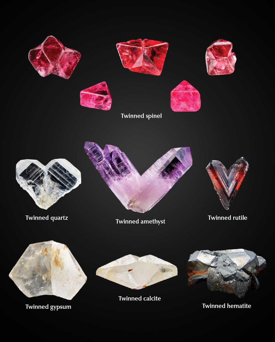 The characteristic morphology of twinned crystals has been studied based on the re-entrant corner effect resulting from preferential nucleation at the corner (Becke, 1911; Chudoba, 1927; Stranski, 1949; Hartman, 1956), as well as the “pseudo-re-entrant corner” effect attributed to the concentration of screw dislocations on the twin boundary at the corner. These studies aim to explain the distinctive morphologies of twinned crystals (Kitamura et al., 1979). The preferential growth at the re-entrant corners has also been emphasized to elucidate the flattened morphology of contact-twinned crystals, including the parallel axes of contact-twinned spinel and macle diamond, the inclined axes of heart-shaped Japan law–twinned quartz, the V-shaped twin of amethyst, the V-shaped twin of rutile, the swallowtail-shaped twin of gypsum, the butterfly-shaped twin of calcite, and the Brazil law twin of hematite (figure 3) (Sunagawa, 1975; Sunagawa et al., 1979; Sunagawa and Yasuda, 1983; Sunagawa and Lu, 1987; Ming and Sunagawa, 1988; Kitamura et al., 1992; Hirabayashi et al., 1993). However, to our knowledge, no detailed study has been conducted on the potential for preferential growth at the salient corners of macle diamond crystals.