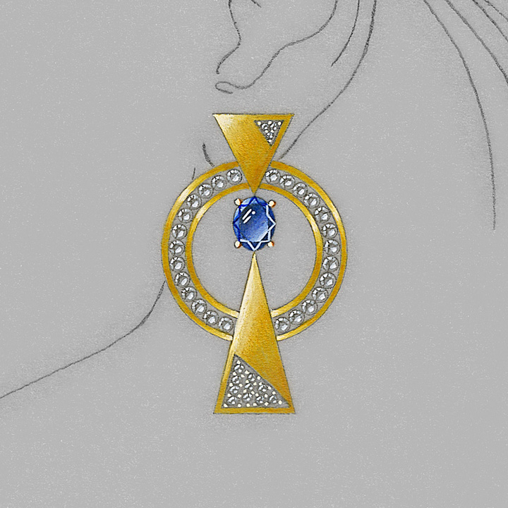 Meghan Simmons, a graduate of GIA’s Jewelry Design program at the Carlsbad campus, received the fifth annual Gianmaria Buccellati Foundation Award for Excellence in Jewelry Design. The award was presented at the GIA Alumni Collective’s “Night at the Museum” event held during the AGTA GemFair Tucson. One of 11 finalists, Simmons competed against more than 80 students from GIA’s seven campuses. Her winning earring design (see above), inspired by the abstract artist Wassily Kandinsky, emphasizes the use of line and shape with gold, diamonds, and blue sapphires.