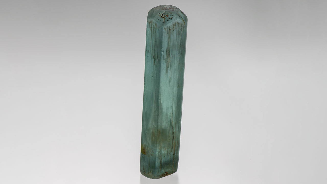 “It would even be a cuttable crystal,” Alexander said. “Of course we would never touch it because of the specialty of the huge liquid inclusion. A liquid chamber that size in quartz would already be amazing,” he continued. “But having it in an aquamarine, which is totally intact—you have the complete termination. And look at the sheer size of that crystal.”