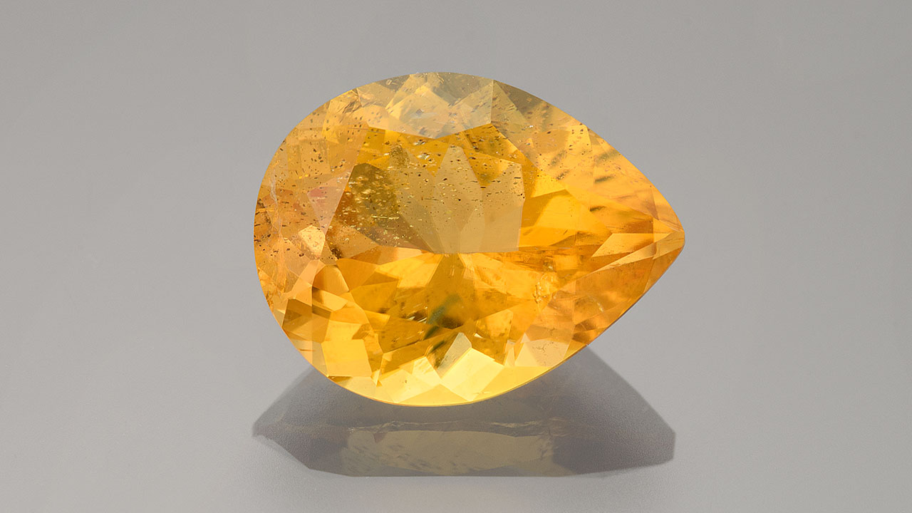 The authors recently examined a 4.63 ct orangy yellow pear modified brilliant (figure 1). The gemological properties as well as infrared and Raman spectroscopy identified the stone as chondrodite.