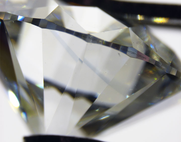 A 1.09 ct D-color diamond grown by chemical vapor deposition (CVD) was recently submitted to the Mumbai laboratory. This submission displayed an interesting blue band, seen through the pavilion facets (figure 1). The blue band could not be observed through the table facet. Infrared spectroscopy showed that it was type IIb with a bulk uncompensated boron concentration of ~10 ppb; the observed color was likely due to boron and a higher concentration of uncompensated boron within this blue growth layer.
