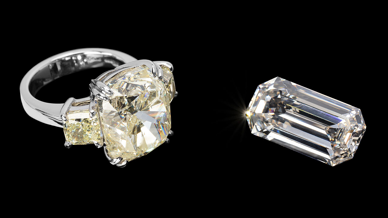 Two extraordinary American diamonds (see above) have found a home at the Smithsonian’s National Museum of Natural History, where they were unveiled as part of the new Great American Diamonds exhibit in June. The 16.87 ct Freedom diamond, the largest faceted diamond of U.S. origin, was fashioned from a 28 ct crystal unearthed at Colorado’s Kelsey Lake mine in 1997. The cushion-cut diamond is now set in a ring donated by Robert E. and Kathy G. Mau. The second diamond on exhibit, the emerald-cut Uncle Sam, was faceted from the largest uncut American diamond crystal ever discovered at 40.23 ct. Uncovered at Arkansas’ Crater of Diamonds in 1924, the flawless 12.42 ct pinkish brown stone was recently recovered from a private collection (after being missing for decades) and donated by Peter Buck. This is the first time the Uncle Sam has been exhibited in more than 50 years.
