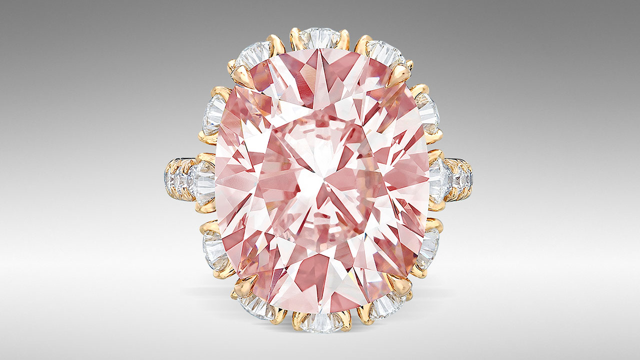 The “Pink Supreme” (figure 3), a 15.48 ct Internally Flawless Fancy Intense pink diamond and the largest of its kind ever offered at auction, sold for $10.8 million at Christie’s Magnificent Jewels sale in Hong Kong on November 27. Set in a gold ring with pear-shaped and round colorless diamonds, the GIA-graded type IIa gem belonging to a private collector sold within its presale estimate.