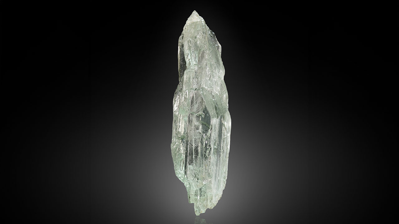 Mined by Geary Murdoch in the 1990s, the crystal was sold to Lowell as an etched aquamarine. Lowell suspected that it was a spodumene crystal due to the very distinctive and diagnostic etching on its surfaces (figure 2). The authors examined the crystal with Raman analysis to confirm its identity as spodumene. Energy-dispersive X-ray fluorescence identified its chromophore as chromium, indicating the specimen was the rare green variety known as hiddenite.