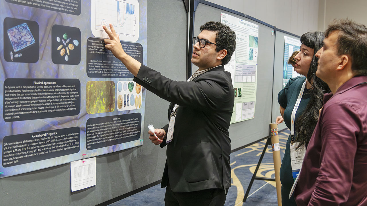 More than 30 posters covering broad topics related to the industry were presented at Converge 2025. Presenters were on hand to interact with Converge attendees to share their gemological knowledge (figure 1). In the poster presentations outlined below, only the principal, or first-listed author, appears.