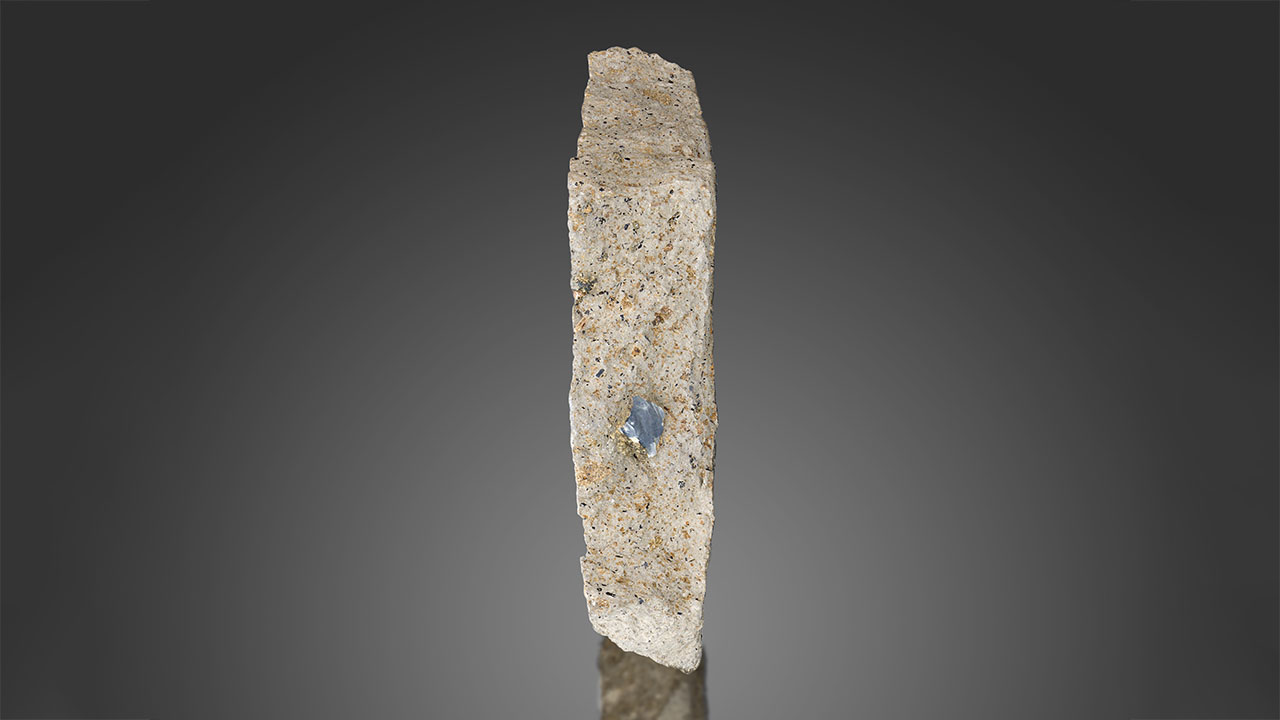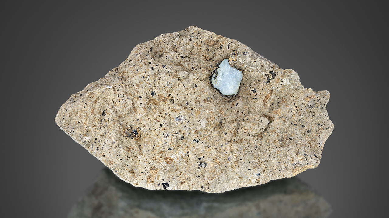 Once a smaller piece of rock has been removed from the sill, liberating the sapphires is done by further breaking down the basaltic trachyandesite matrix with a hammer and chisel. If a sapphire is present in the piece being hammered, the rock often breaks along the sapphire’s edge, with the sapphire protruding out in one piece of the broken matrix, leaving the other portion with a concave impression covered in a thicker layer of biotite (phlogopite) crystals over a very thin layer of clay (figure 10). If the piece containing a sapphire will be preserved as a mineral specimen, dental tools and/or a small abrasive air gun are used to neatly remove some of the matrix surrounding the sapphire to create an attractive appearance (figure 11).