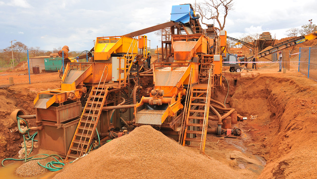 The Montepuez processing plant was recently expanded to reach a capacity of 150 tons per hour, and there are plans to increase that by an additional 250 tons per hour. The processing plant is organized into four major areas: (1) dry screening, (2) disintegration with a log washer, where the removal of waste particles with water begins, (3) wet screening, and (4) sizing and concentration. In an auxiliary section, water is held in a reservoir and cleaned for use in washing.