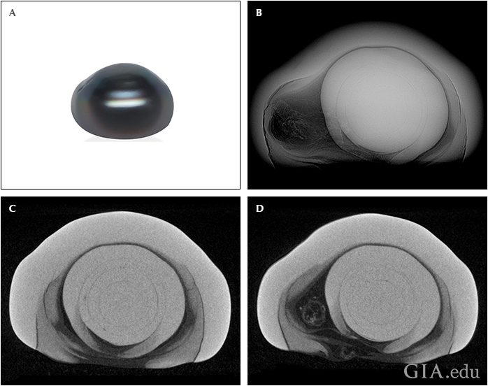 The majority of pearls obtained from the farms of the French Polynesian islands are BC pearls, though not all the nuclei inserted produce such a pearl and thus some NBC pearls also result as a by-product. This type of pearl is valuable and in demand in its own right, so they are not always unwelcome and create another product that can be marketed by the trade (Doulton, 2015). Since little has been published in the gemological literature about the internal structures of NBC pearls produced by the Pinctada margaritifera mollusk, GIA took the opportunity to obtain a selection of cultured pearls on loan from a dealer in Bangkok to study their structures as well as their spectral features for reference purposes. Only by examining the structures of pearls of known types from known sources can any reliable database be developed. While we were unable to source the pearls in this study directly from the farm/mollusk, we believe we obtained pretty reliable samples from a trusted source who handles cultured pearls on a daily basis. The pearls were also selected by GIA team members on the premises and removed from bags of similar-looking pearls numbering in the thousands. The chances of any truly natural pearls being included among the pearls would be slim at best. The results of the analysis appear to support the claims that these pearls were cultured in Pinctada margaritifera bivalves, or at least were formed from mantle that incorporated the genes of the Pinctada margaritifera mollusk (Karampelas, 2013). The various internal structures recorded and the characteristic spectra that relate to the various colors examined will provide valuable references for gemologists looking for data on such NBC pearls.