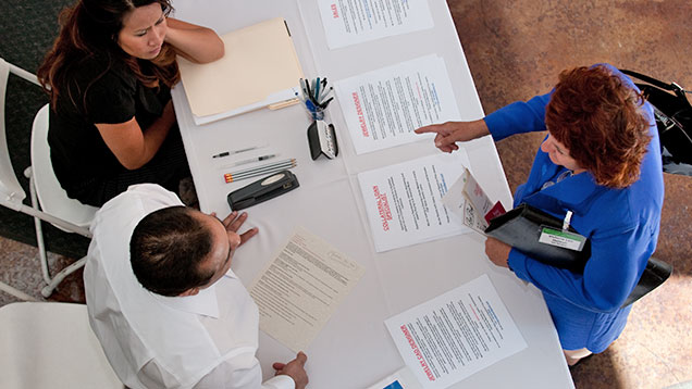 時間通りに到着しましょう。キャリア フェアが始まると、会場は混雑します。バッジや配布資料を受け取り、開催時に行われる説明会に参加できるように、必ず時間通りに到着してください。
