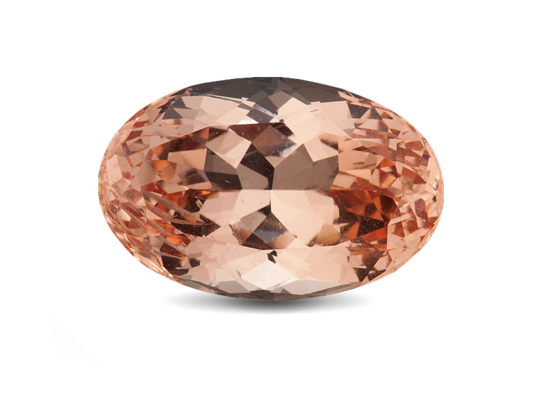 未処理のモルガナイトは多くの場合、強いオレンジ色成分を有し、サーモン色を示します。