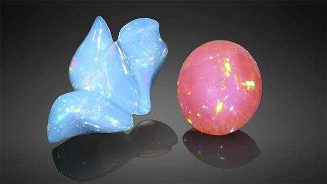 Play-of-color pattern in Ethiopian opal is reminiscent of a turtle’s shell.