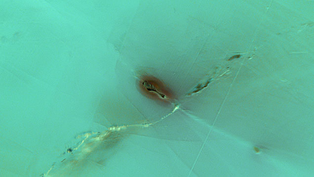 Examination of a 1.34 ct ruby reveals a unique inclusion formed during heat treatment.