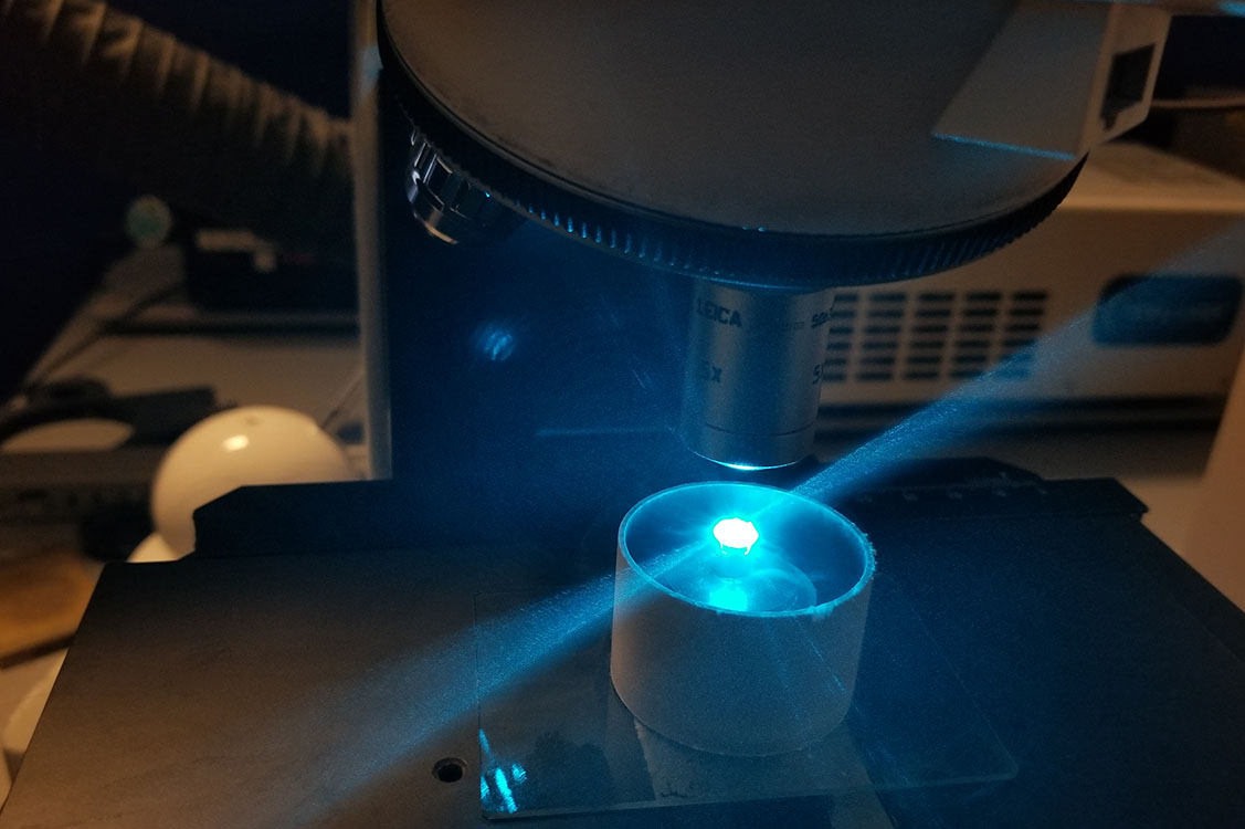 - A GIA-built short-wave UV excitation with a 275 nm LED light source and an Avantes AvaSpec-Mini spectrometer.